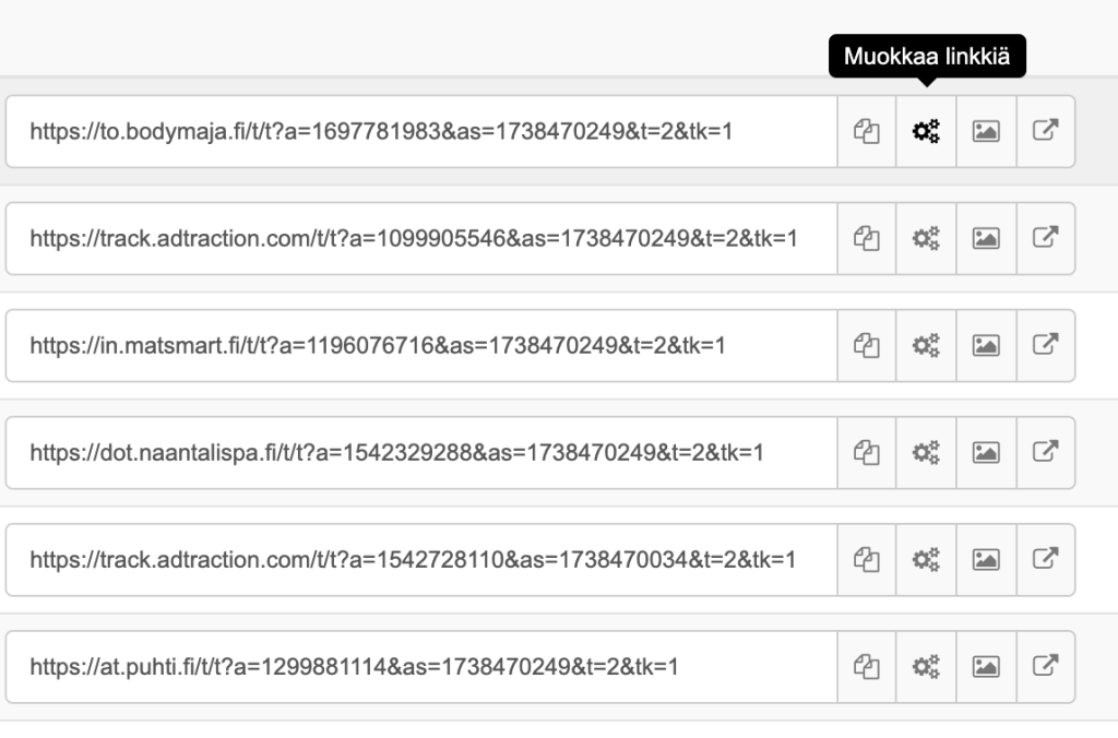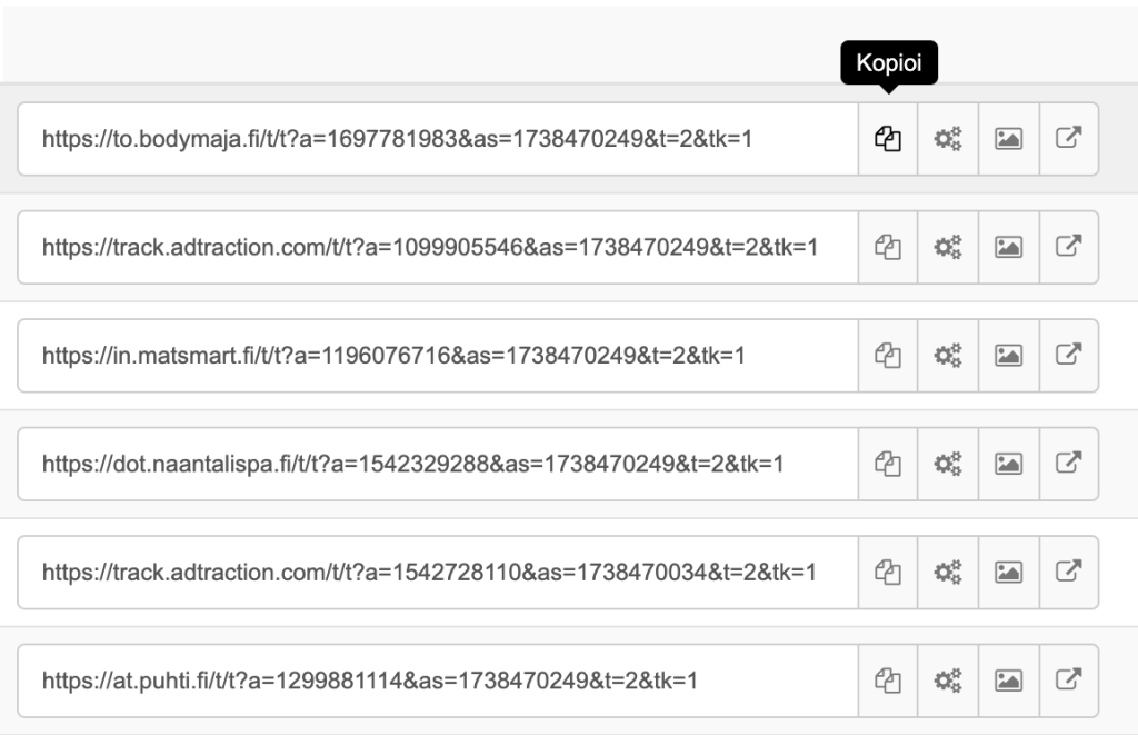 Tämän jälkeen hae muokkaamasi seuranta linkki, eli kopioi koko seurantalinkki