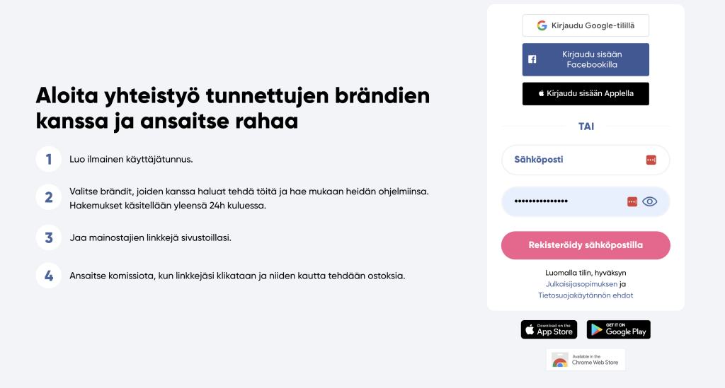 Jos affiliate-markkinointi ei ole sinulle ennestään tuttua, voit tutustua siihen lukemalla näitä blogitekstejä.