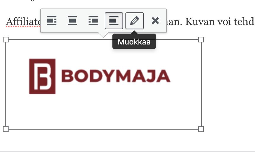 Affiliate-linkin voi myös lisätä kuvaan. Kuvan voi tehdä itse esimerkiksi Canvalla tai hyödyntää yrityksen logoa. Tarkista vain, saako logoa käyttää.