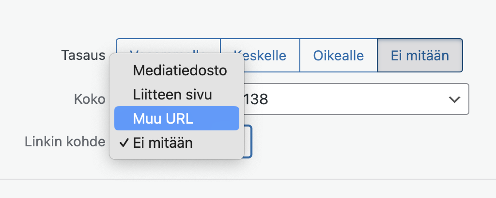 Tämän jälkeen valitse ”Linkin kohde” kohdasta ”Muu URL”.
