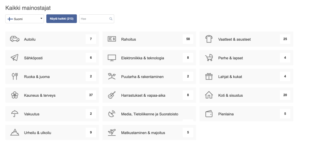 Mene siis ”Mainostajat” ja ”Kaikki mainostajat”.